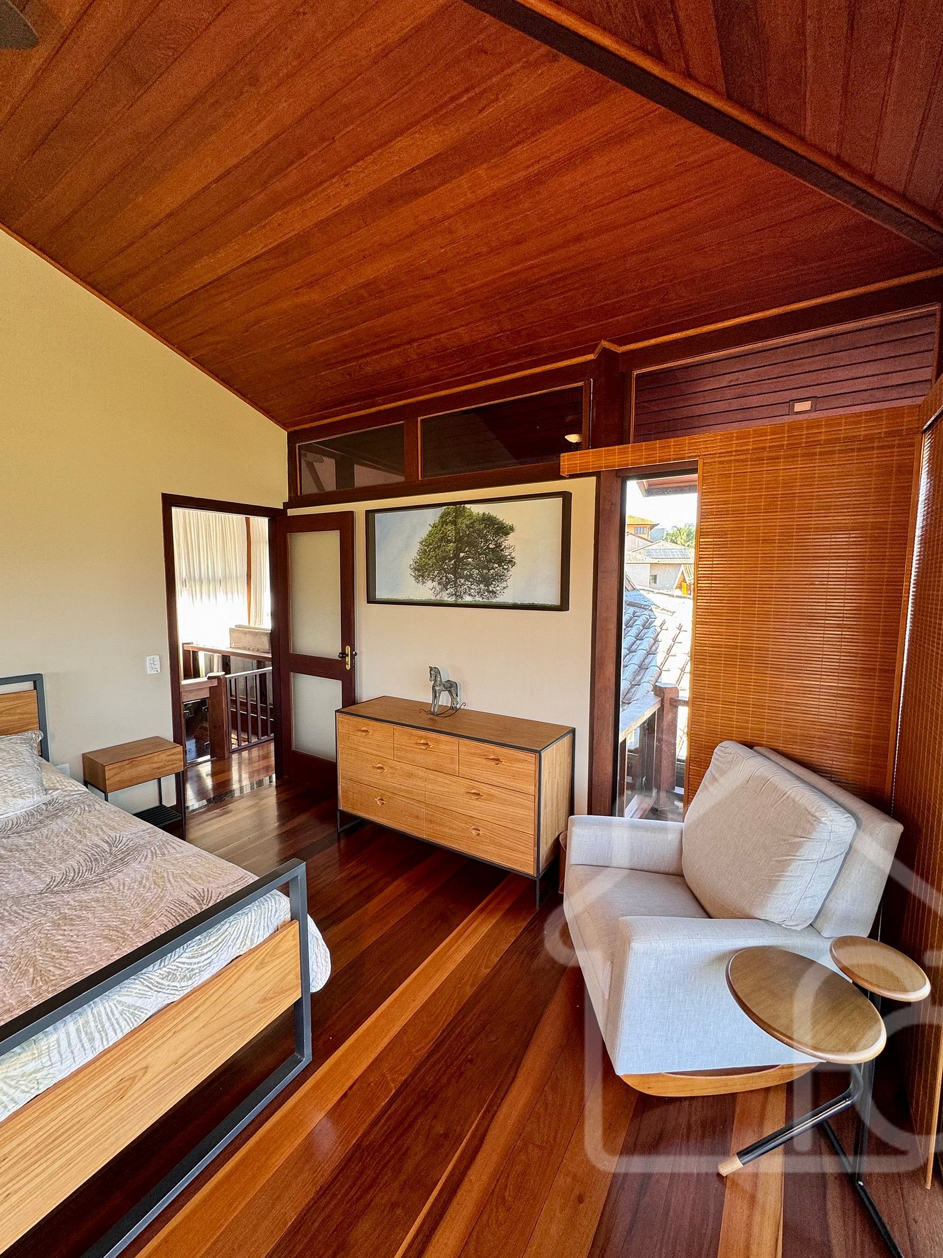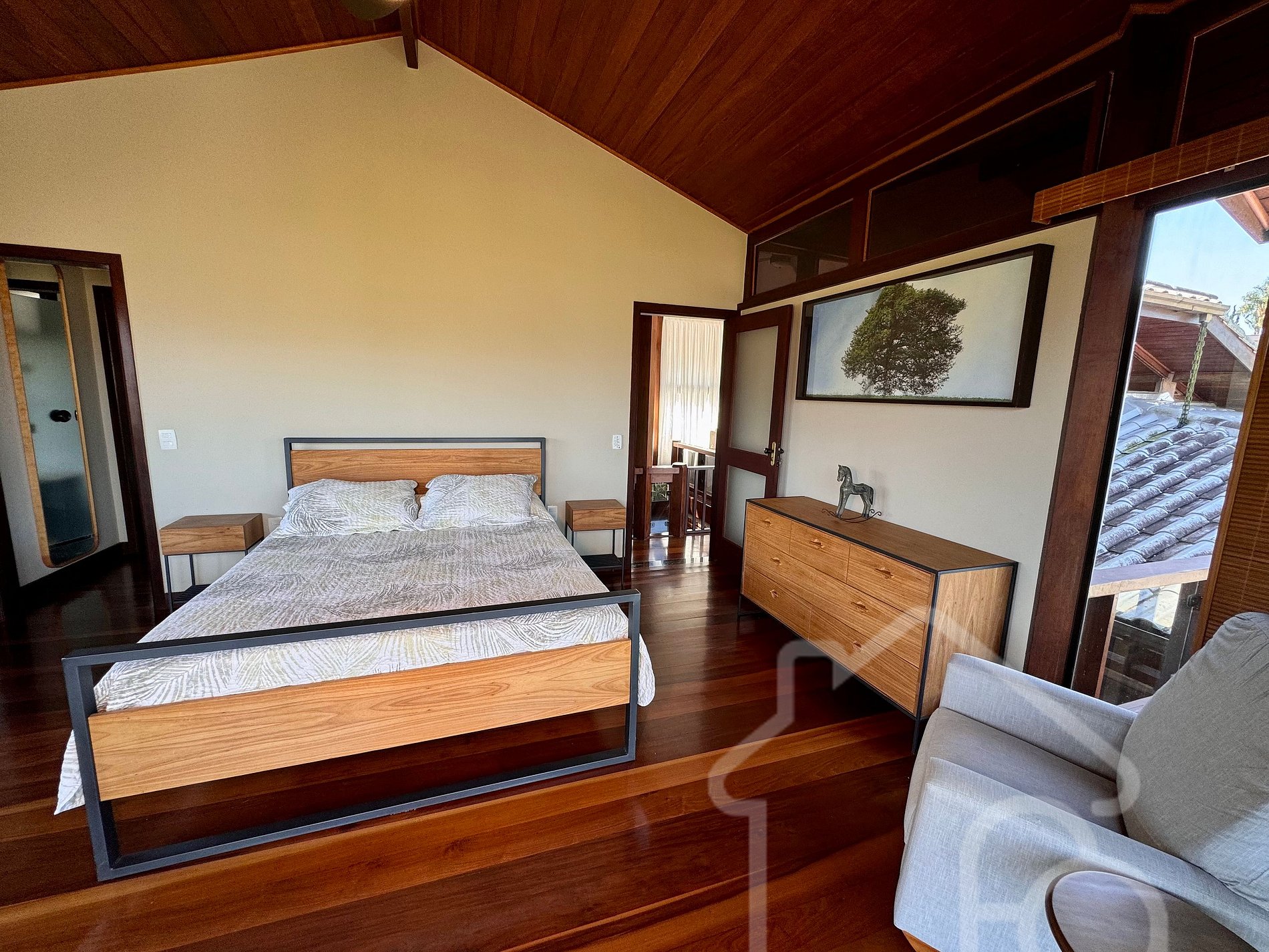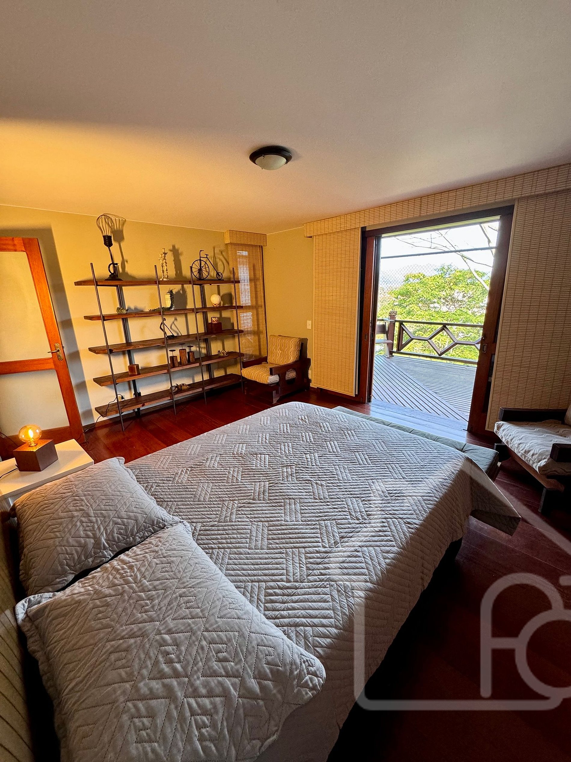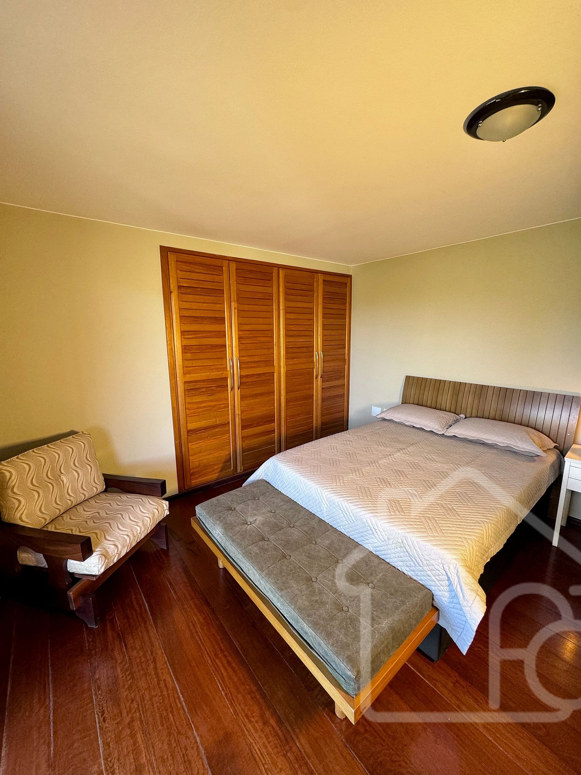 - Suíte com cama queen, armário, banheiro completo e varanda privativa