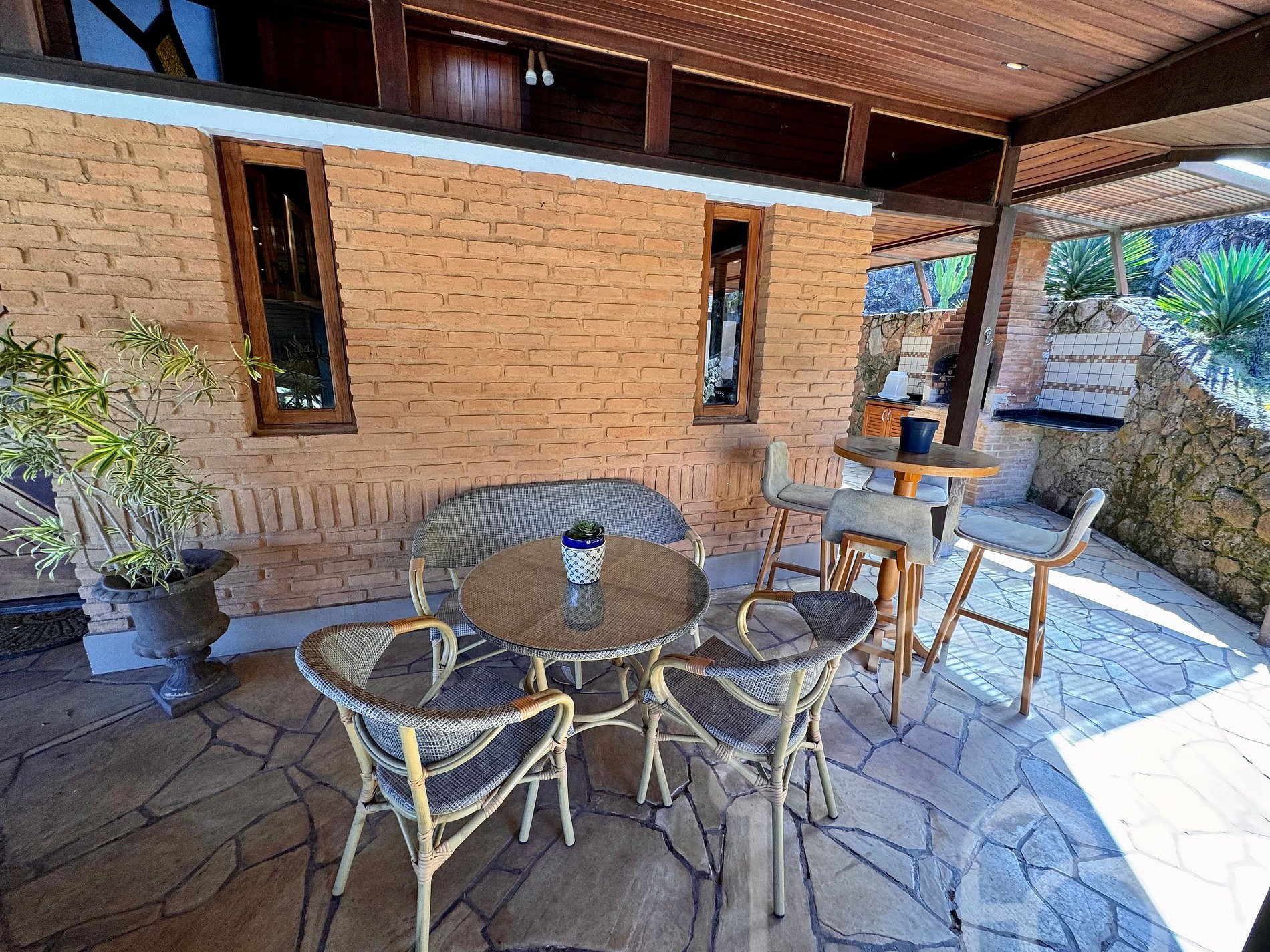 Os hóspedes terão acesso total e liberado a todas as dependências da casa, incluindo varandas, churrasqueira, salas, suítes, cozinha e garagem.