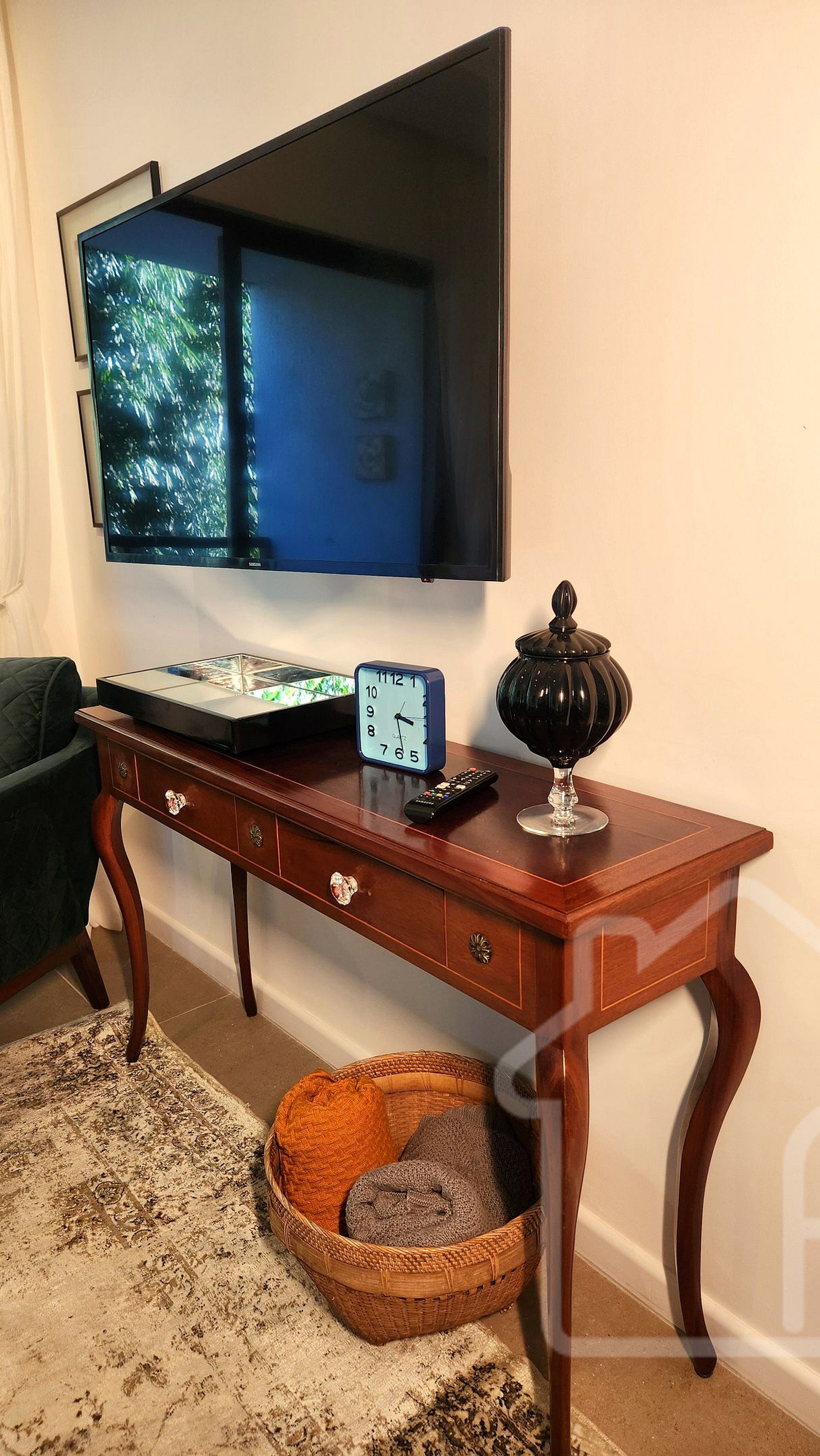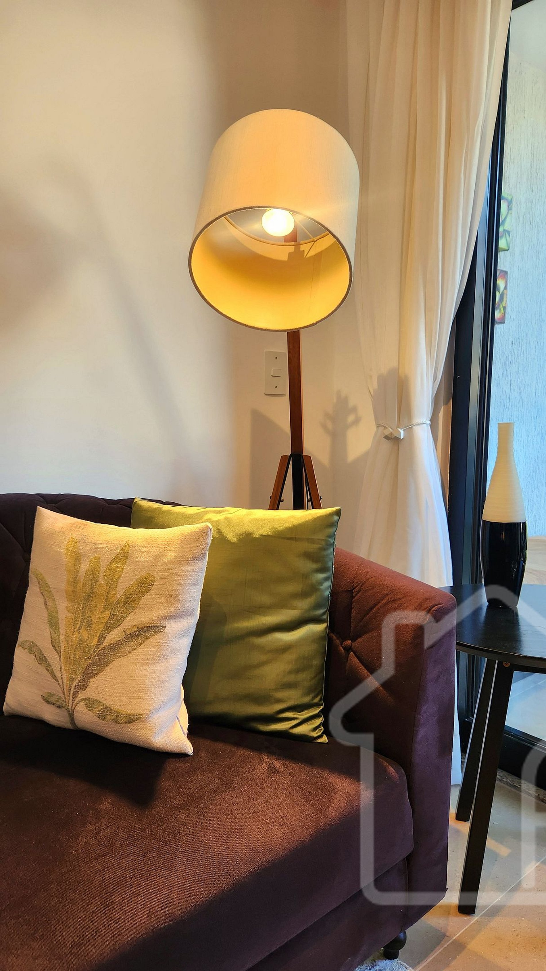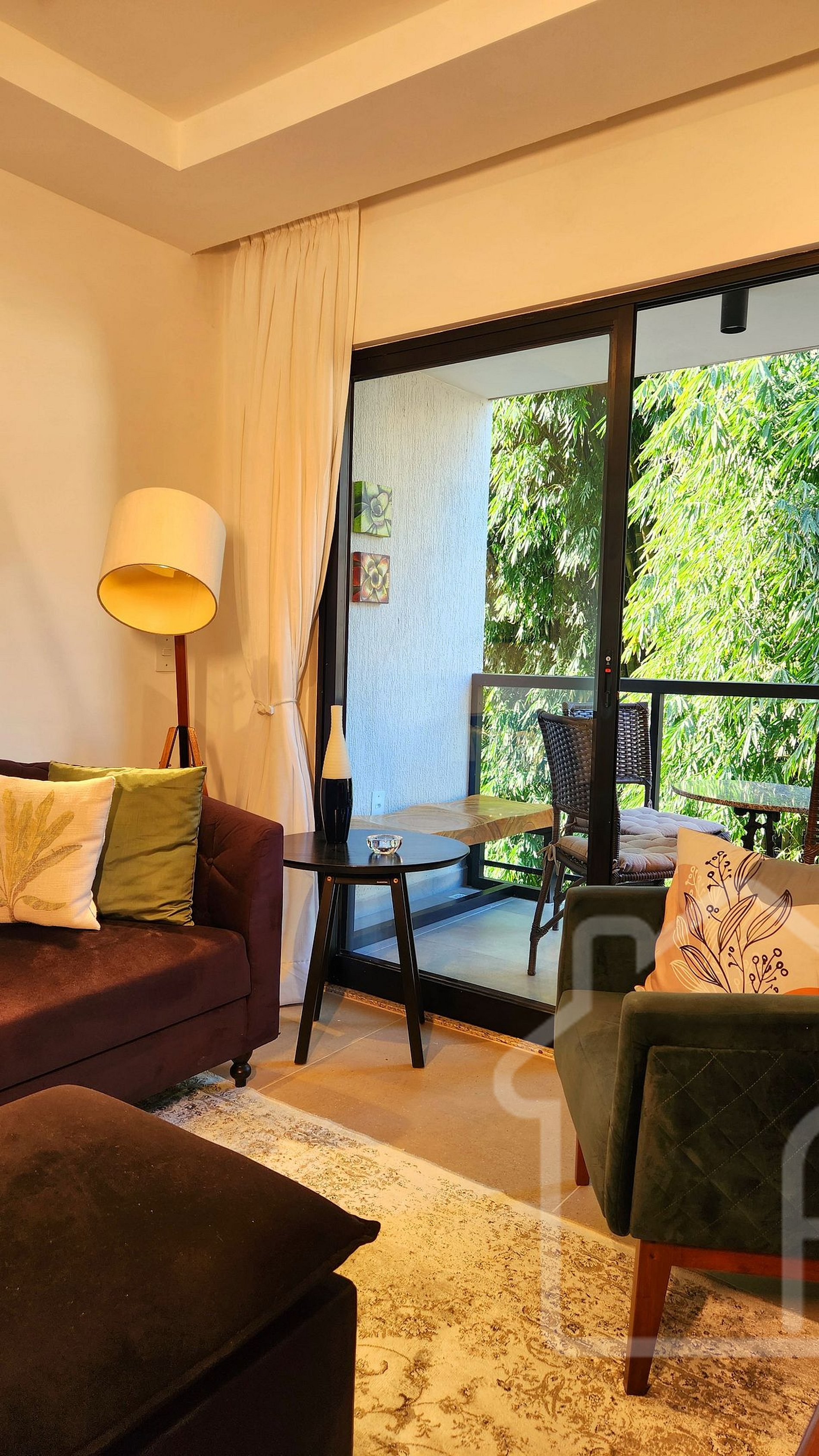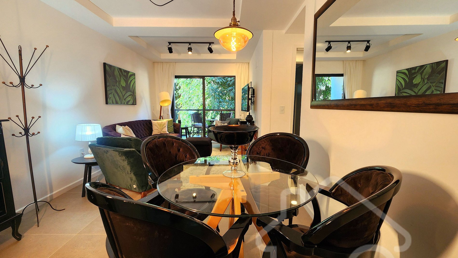 - Sala de estar integrada à sala de jantar: Smart TV, ambiente acolhedor, decorado e com acesso à varanda.