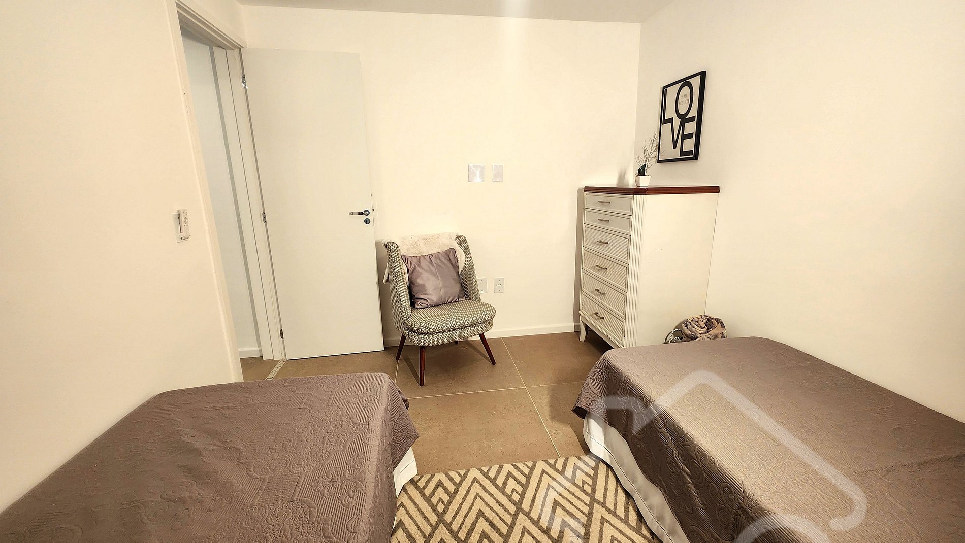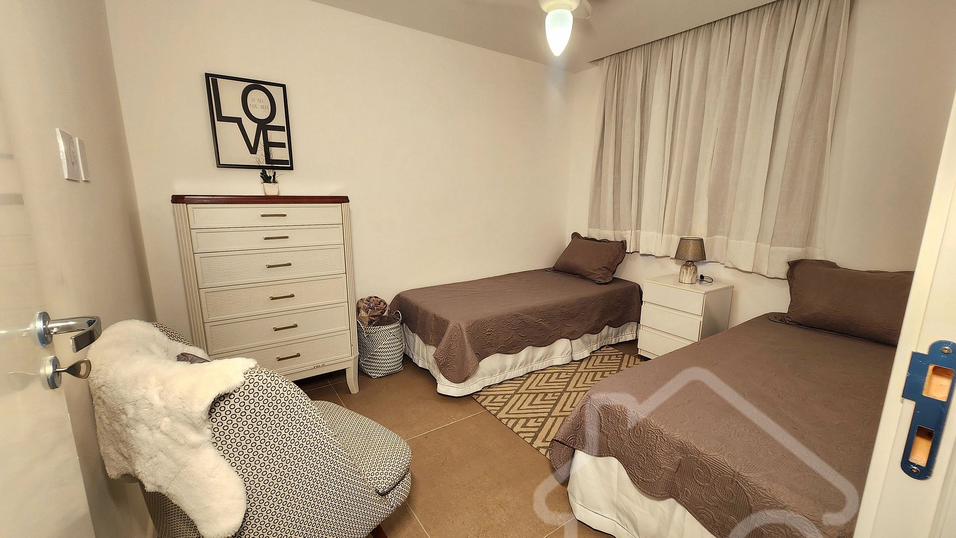 - Quarto 2: Duas camas de solteiro e arara.