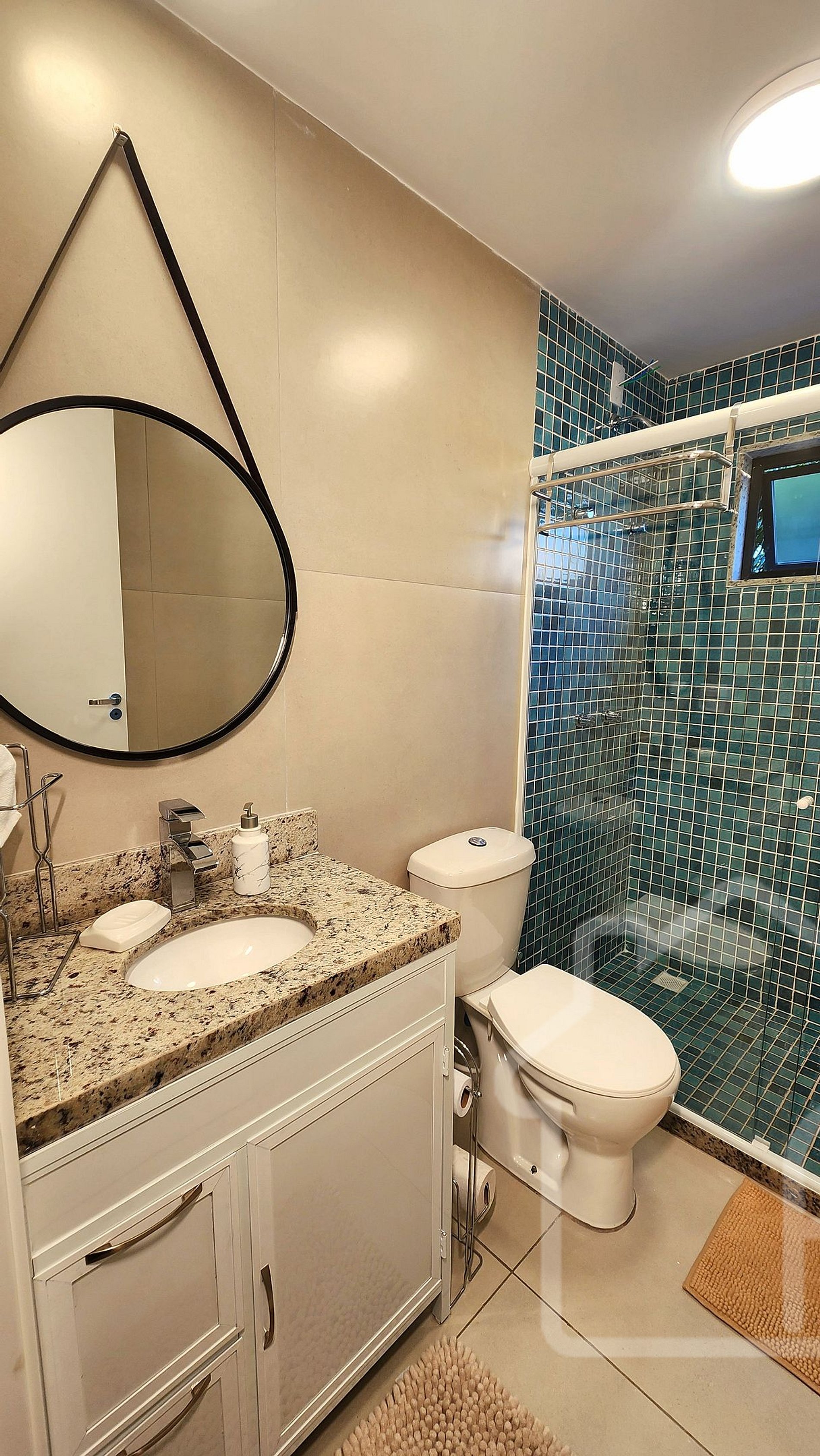 - Banheiro social: Completo, com chuveiro a gás, secador de cabelo e ferro de passar.