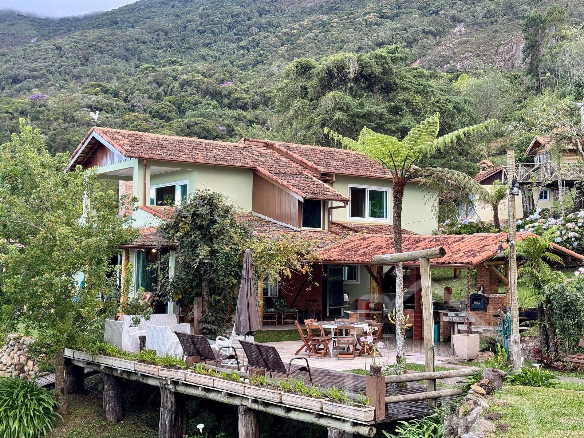 Perfeita para quem valoriza conforto e uma vista única, esta casa na Caledônia oferece panoramas incríveis da cidade e das montanhas. Com sala integrada, cozinha prática, área gourmet equipada, duas suítes e ótima área externa com piscina natural e lago. Conta também com chalé para hóspedes e garagem fechada. Um espaço ideal para viver com qualidade, lazer e contato direto com a natureza. Fácil acesso ao Pico da Caledônia.
